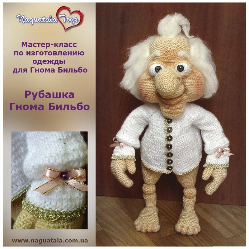 ...Пёс Тори очень удивился, увидев Гнома Билбо в новой, роскошной одежде. Бильбо весь сиял и радостно показывал обновки Тори. Рубашка и штанишки на завязках, на кончиках которых яркие зелёные бусины игриво свисают над удобными и красивыми ботиночками . А полосатые причудливые чулки придают Бильбо принадлежность к миру магии и волшебства. Бильбо желает всем спокойной ночи и ему, как всем нам, нужно сегодня хорошо отдохнуть, потому что завтра ему предстоит встреча со своим внуком Фродо...