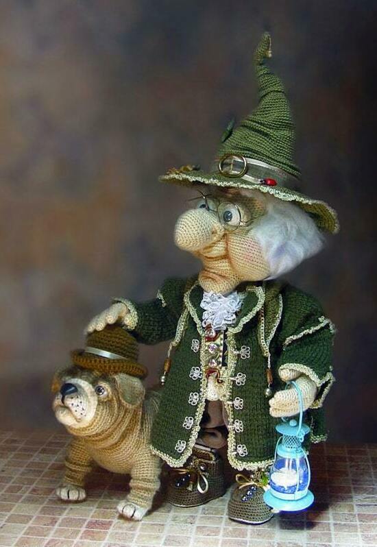 ...Пёс Тори очень удивился, увидев Гнома Билбо в новой, роскошной одежде. Бильбо весь сиял и радостно показывал обновки Тори. Рубашка и штанишки на завязках, на кончиках которых яркие зелёные бусины игриво свисают над удобными и красивыми ботиночками . А полосатые причудливые чулки придают Бильбо принадлежность к миру магии и волшебства. Бильбо желает всем спокойной ночи и ему, как всем нам, нужно сегодня хорошо отдохнуть, потому что завтра ему предстоит встреча со своим внуком Фродо...